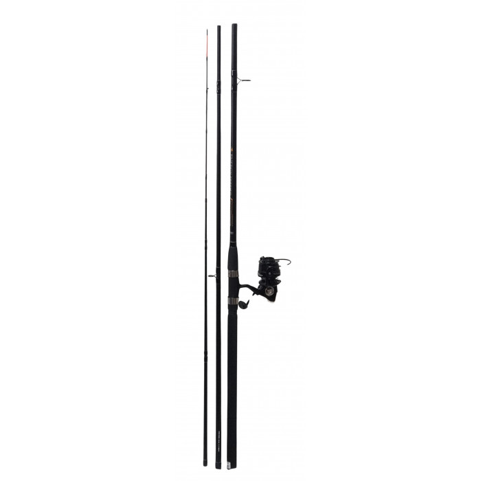 Feederrute, die auch für Methods verwendet werden kann, eine Länge von 3m60 bei einer Stärke von 100g mit einer Rolle in Größe 4000.