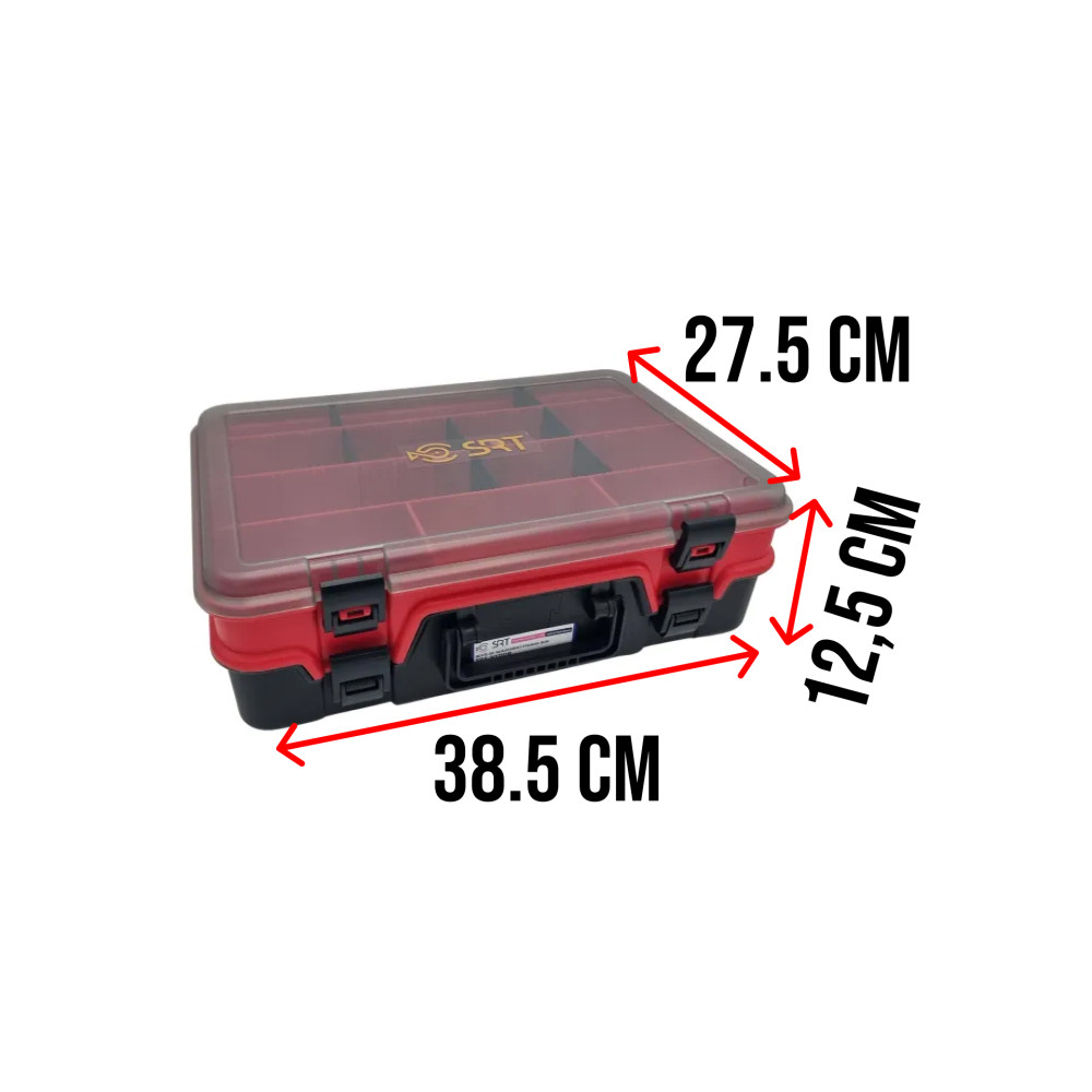Mit ihren Abmessungen von 385x275x125 mm und ihrem eleganten Design in Black / Red ist sie perfekt für Angler, die eine effiziente und flexible Aufbewahrung wünschen.