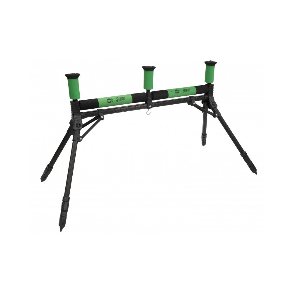 Die Beine lassen sich einklappen, wodurch der Stock in wenigen Sekunden aufgestellt oder zusammengeklappt werden kann. Da die Rolle in zwei Teile geteilt ist, kann der Stock nicht seitlich verrutschen oder an windigen Tagen umkippen. An dem Haken in der Mitte der Rolle kann ein Gewicht angebracht werden, um die Rolle noch stabiler zu machen. Wird in einer Tragetasche geliefert.