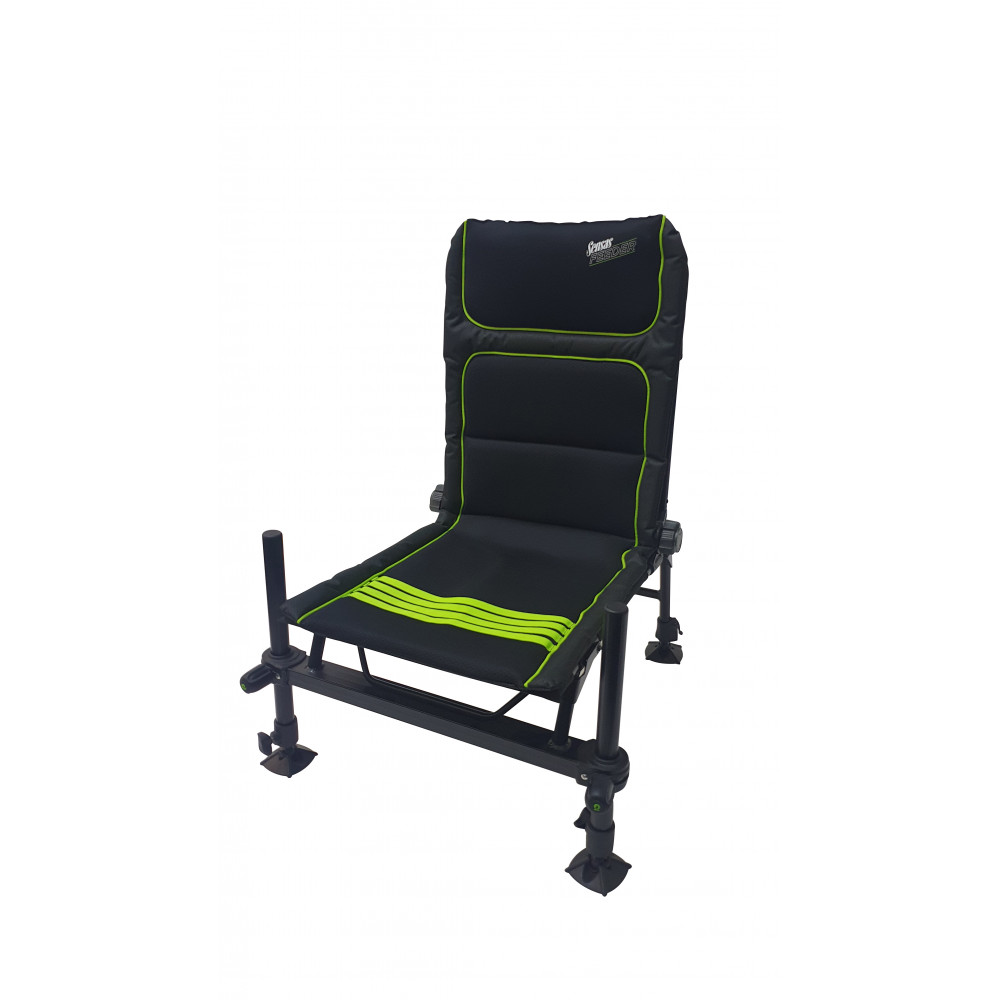 Ultrabequemer Stuhl mit 2 Teleskopbeinen hinten und 2 Beinen mit einem Durchmesser von 36 vorne für eine optimale Installation an allen Arten von Ufern.