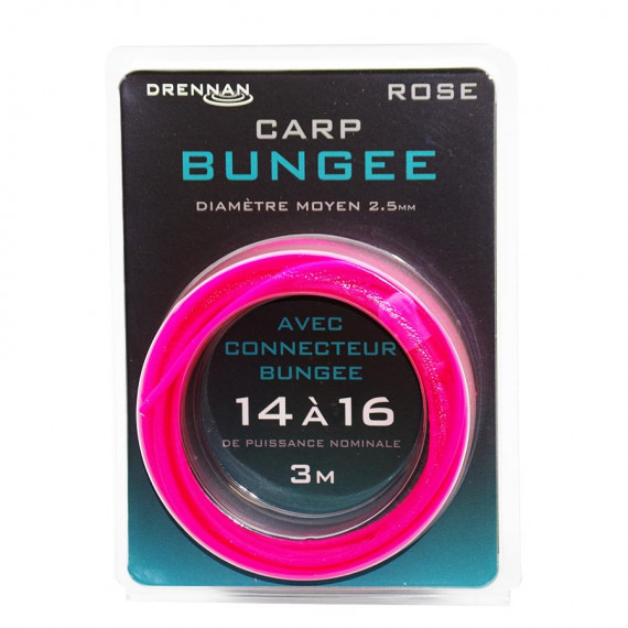 Drennan Carp Bungee ist ein hohles, doppelwandiges Gummiband mit einer fluoreszierenden, gut sichtbaren Außenseite. Es verfügt über außergewöhnliche Dehnungseigenschaften, die es besonders effektiv beim Kampf mit großen Fischen machen, da es sich viel stärker dehnt als ein Volllatexgummi.