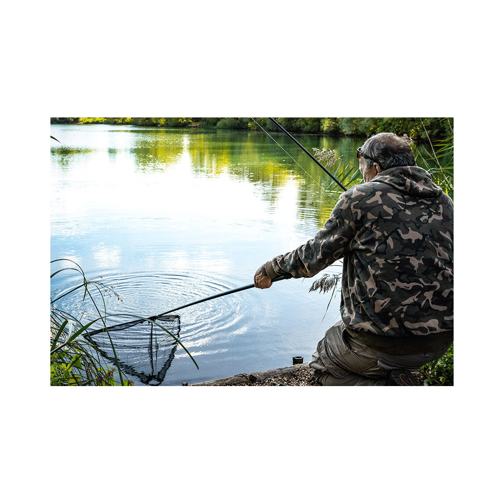 Eos 42" Fox Kescher, der hauptsächlich zum Karpfenangeln verwendet wird.