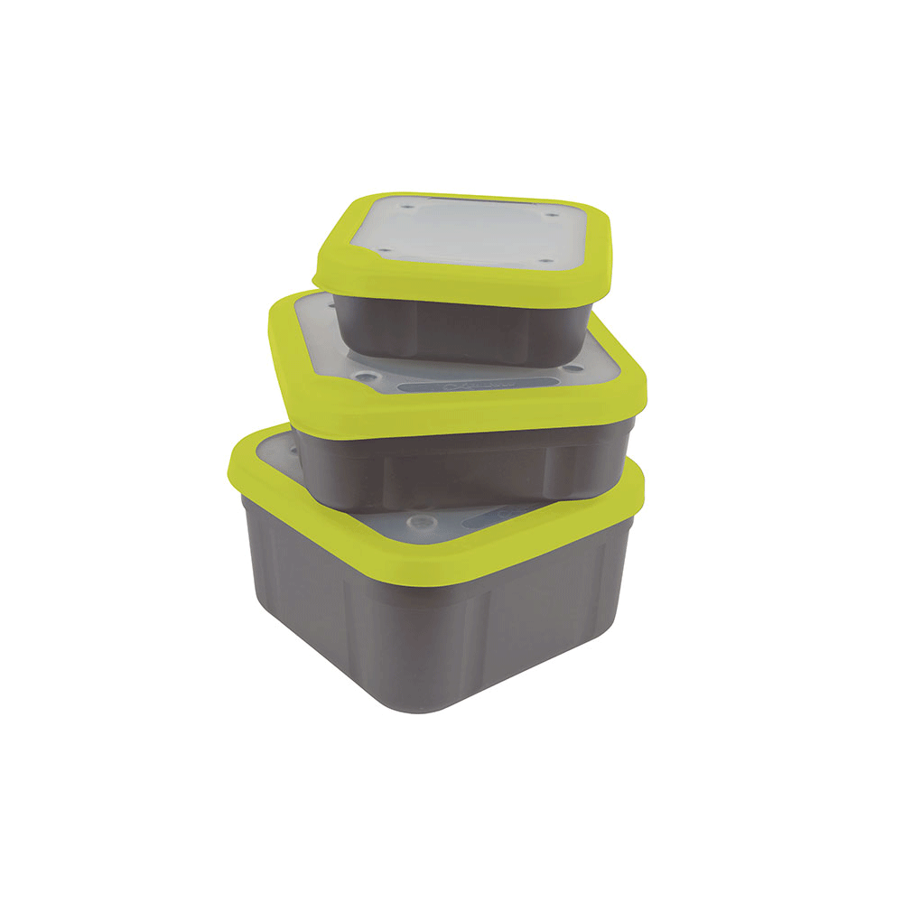 Diese Köderboxen eignen sich dank des versiegelten Deckels aus atmungsaktivem, leicht anzupassendem Gummi perfekt, um lebende Köder kühl zu halten.