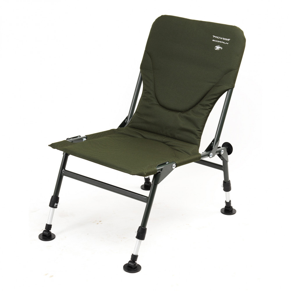 Prowess bietet Ihnen einen kompakten und leichten Level Chair, das Modell SCORPIUM, ein Muss beim Karpfenangeln!