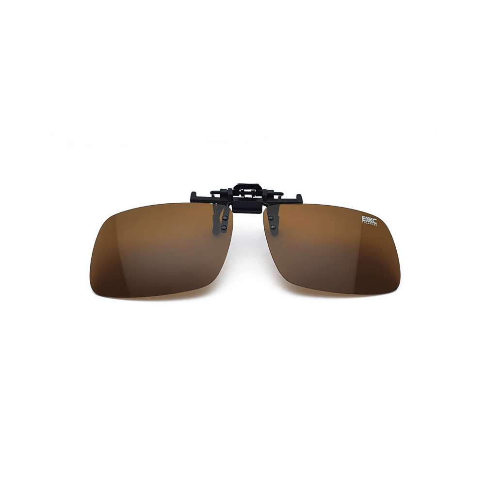 Polarisierende Clip-Brille in brauner Farbe mit der Möglichkeit, sie hochzuklappen.