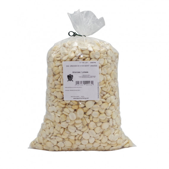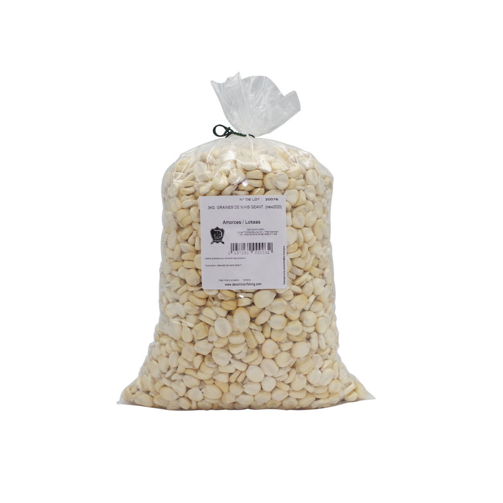 Der Riesenmais, auch Pferdezahnmais genannt, ist besonders groß (15 bis 25 mm), was ihn so interessant macht. Im Gegensatz zum herkömmlichen Mais können Sie mit diesem Mais Brassen und andere Weißfische ausschließen, die sonst den kleineren Mais fressen würden. Packung mit 3 kg.