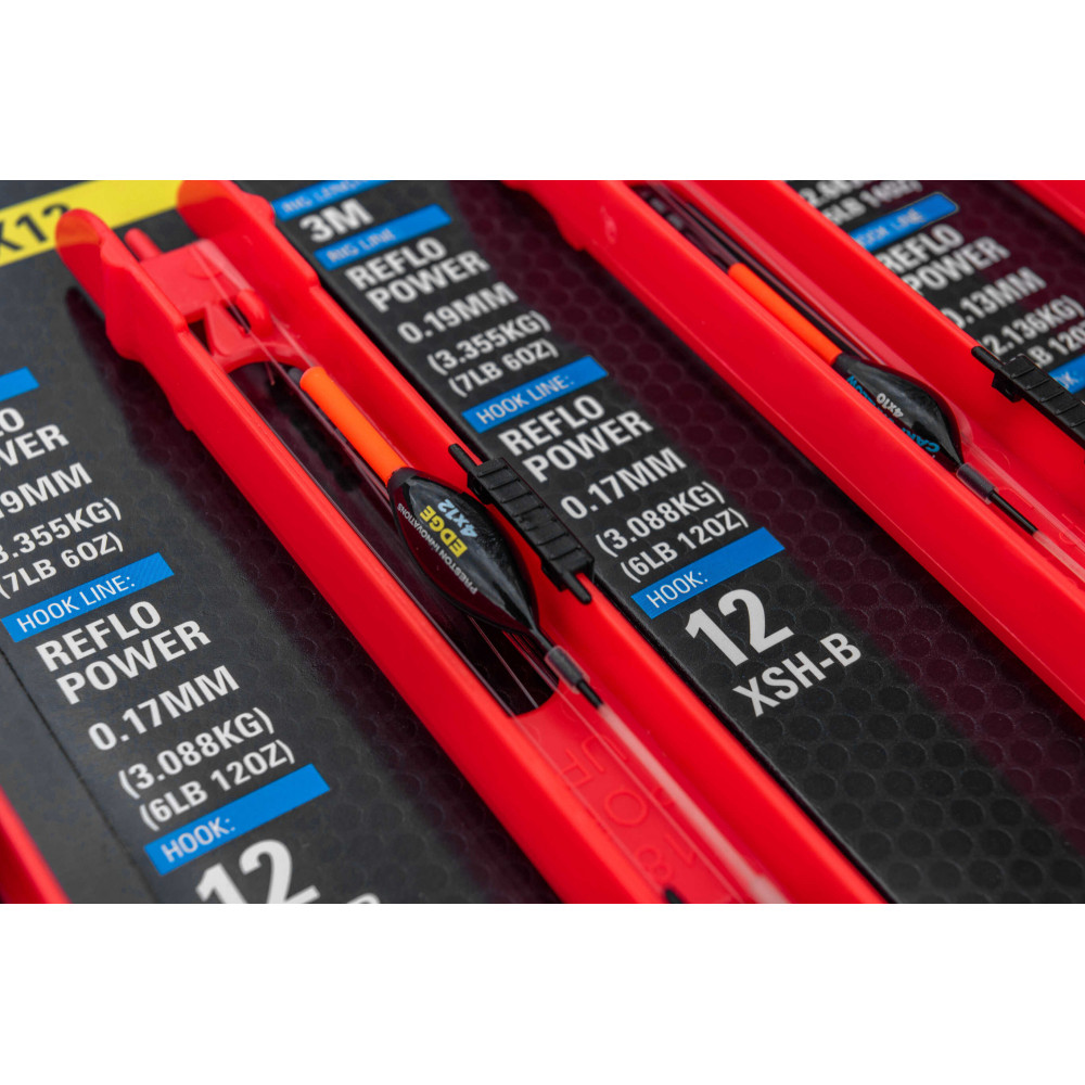 Diese Schwimmer sind mit unserer Dura Side Eye-Öse versehen, die ihnen mehr Festigkeit als eine normale Öse verleiht, während sie gleichzeitig perfekt ausbalanciert sind. Die Schnüre und Vorfächer wurden mit unserem Reflo Power Nylon montiert und mit GPM-B Haken bestückt, die sich perfekt für viele Situationen und mit vielen Ködern eignen. Um die Schnur auszubalancieren, haben wir Stotz Bleie verwendet.