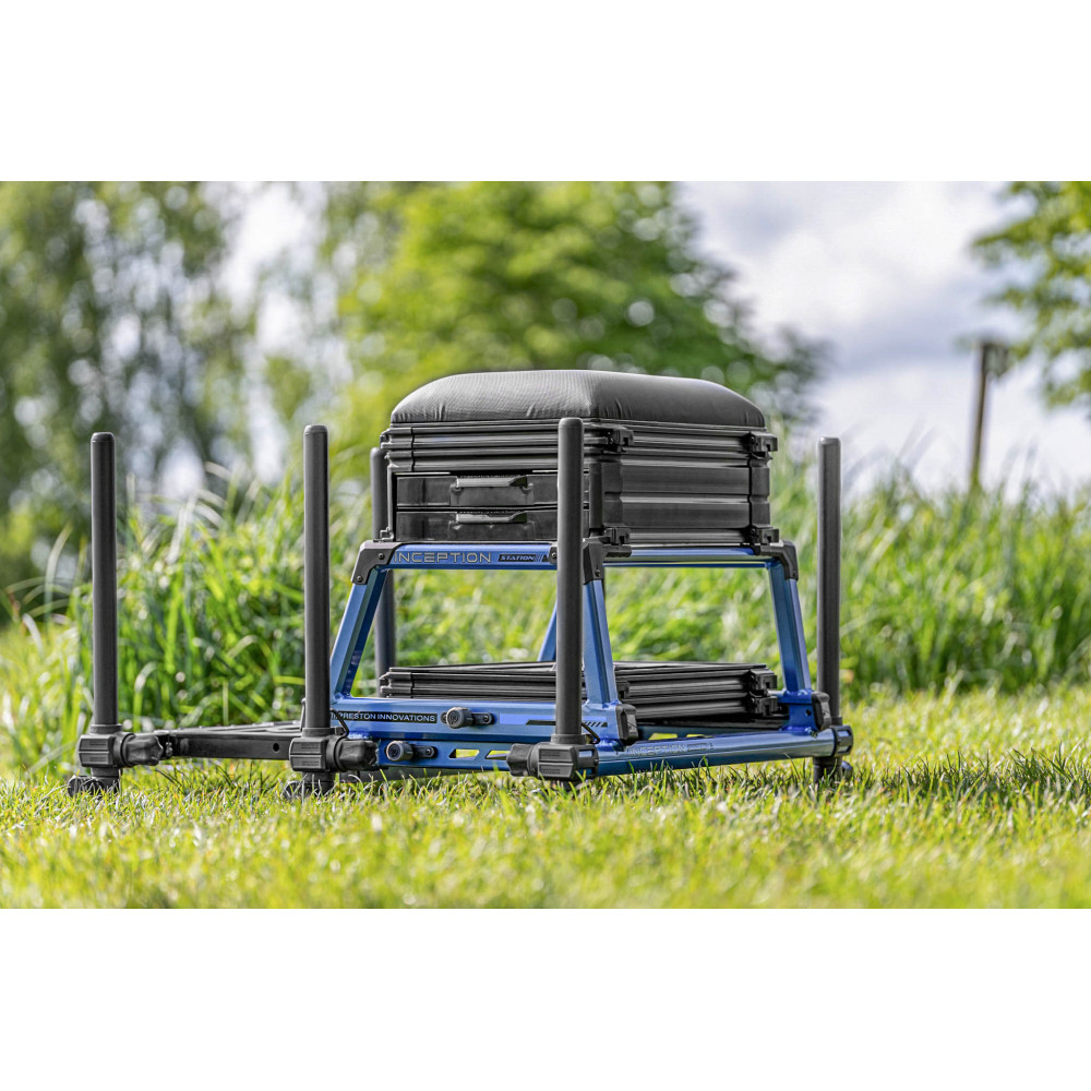 Die Inception Station, die auf einem superstarken und eleganten Rahmen aufgebaut ist und in einem Blau in limitierter Auflage geliefert wird, verfügt über reichlich Stauraum. Die Seitenschublade mit tiefen Fächern eignet sich perfekt für Zubehör, während die tiefe Seitenschublade mit herausnehmbaren Trennwänden für Hakenlängenboxen, Stangenwickler oder anderes größeres Zubehör verwendet werden kann. Zwischen den Schubladen und dem Stocksitz befindet sich ein leeres, flaches Tablett, das sich wiederum perfekt für die Aufbewahrung von Stockzubehör eignet.