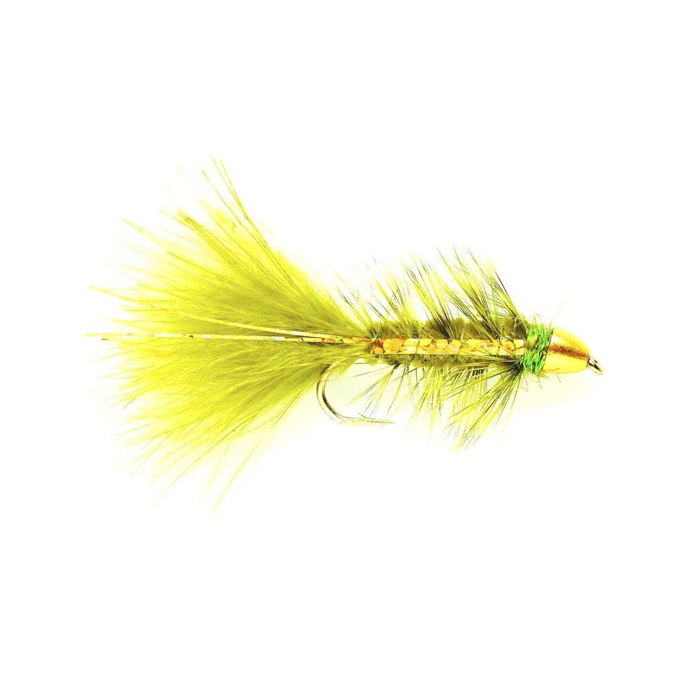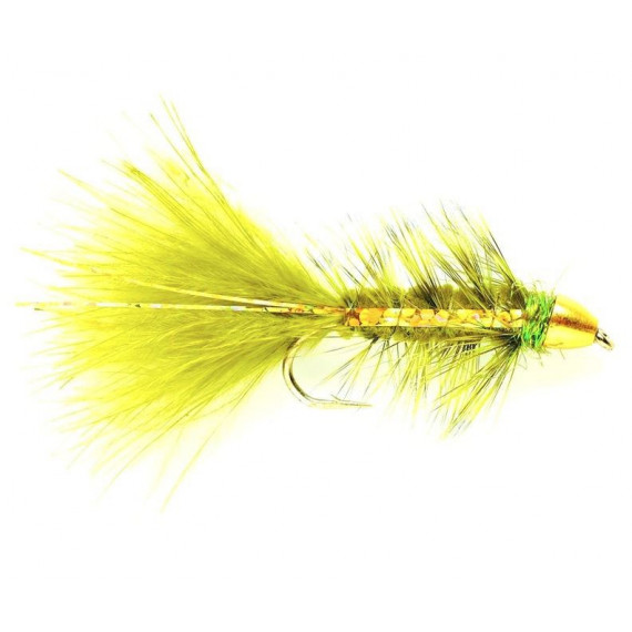 Die Kugel-Goldolive-Flash-Fliege wird mit einer Messing conehead Perle gebunden, gibt fantastische Bewegung und hilft Ihnen, zu den größten Fischen hinunterzugehen, wenn sie tief sind.
