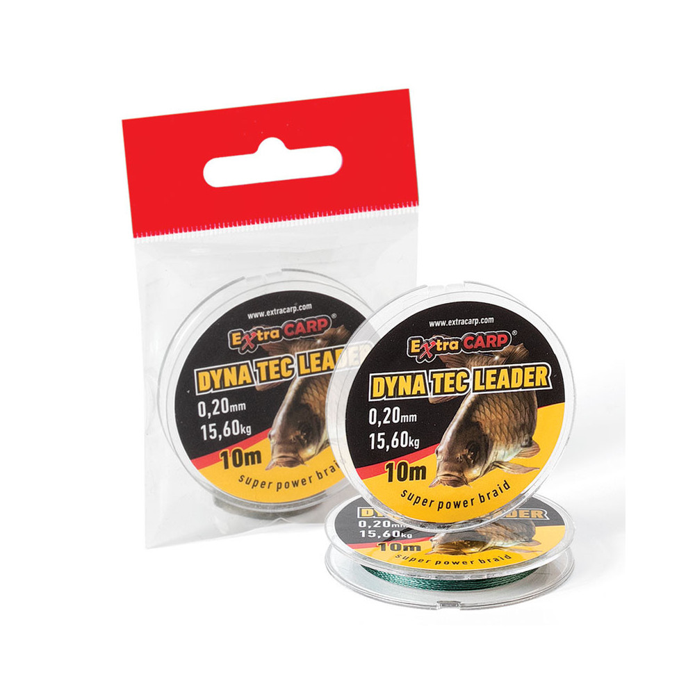 Extra Carp 10m Dynatec Leader Vorfachgeflecht, das speziell für das Angeln auf Karpfen entwickelt wurde. Sie ist ideal für viele Karpfenmontagen.