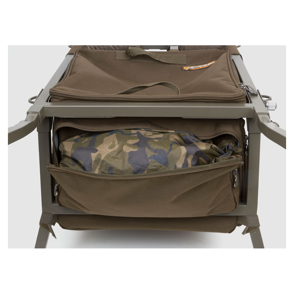 - Die Tasche "Voyager under barrow bag" hat einen festen Boden, ein herausnehmbares Regal, um die verschiedenen Taschen zu organisieren, und seitliche Reißverschlüsse für einen schnellen Zugriff auf den Inhalt.
