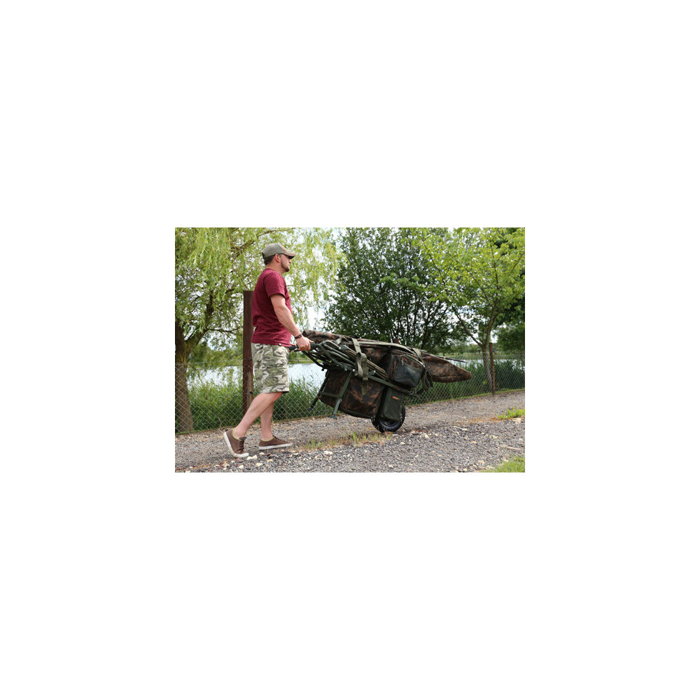 - Ausziehbare Frontladefläche-ermöglicht es, die Camolite Barrow Bag (separat erhältlich) an der Vorderseite des Wagens zu befestigen, wenn man einen Bedchair beladen können muss. Wenn Sie einen Tag lang unterwegs sind, ziehen Sie diese vordere Platte einfach unter den Rahmen und die Barrow Bag wird an der Innenseite der mittleren Platte befestigt, so dass sie Ihnen zugewandt ist. Das Design des Trolleys sorgt dafür, dass er sowohl im kurzen als auch im langen Modus ausbalanciert bleibt.