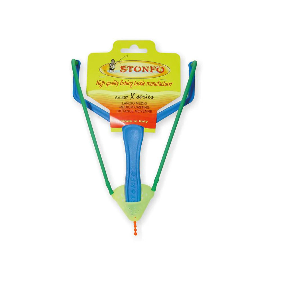 Schleuder, die für einen präzisen Wurf auf mittlere Distanzen entwickelt wurde. Inklusive Ersatzgummis.