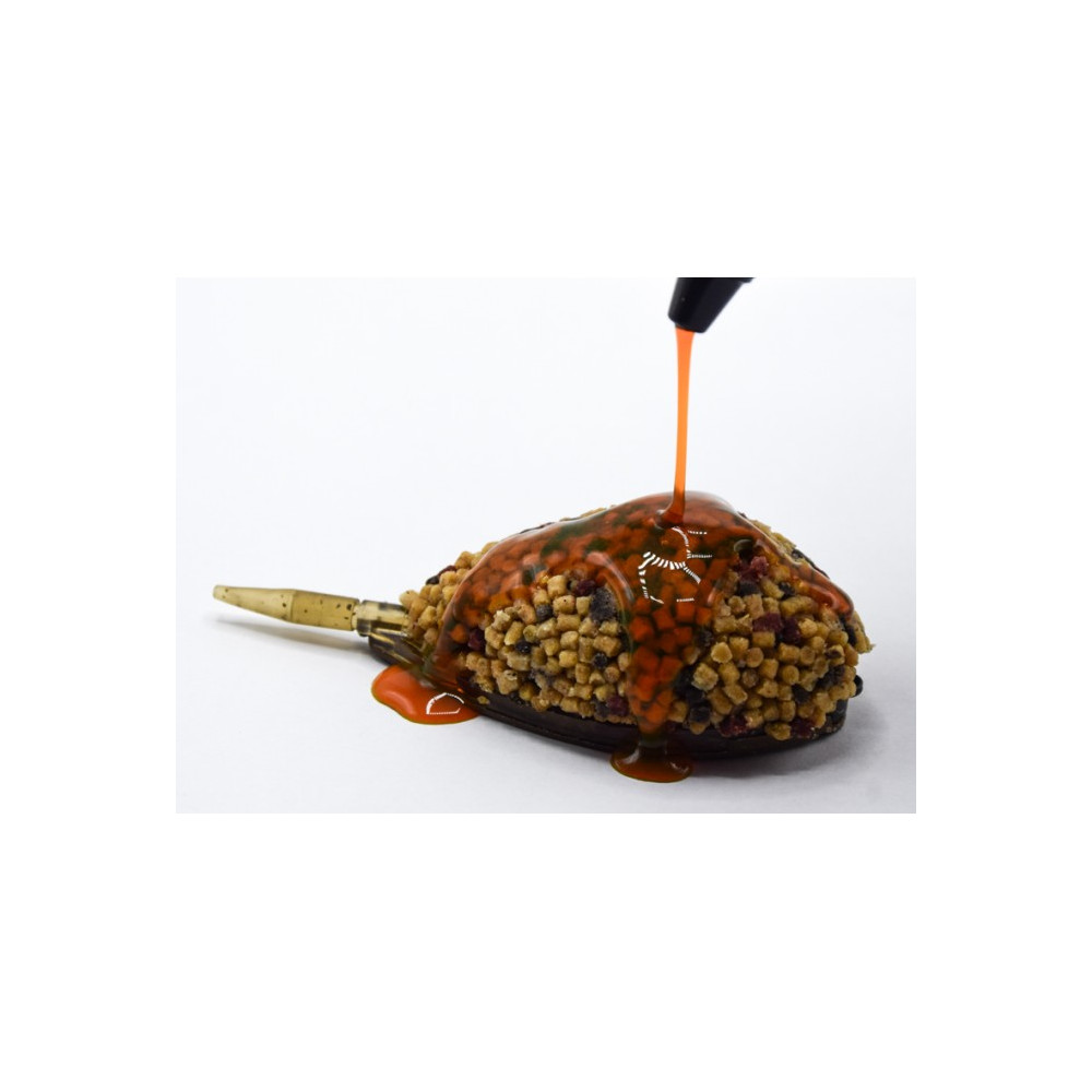 La acción principal de Flash Glue Amino Fish es crear una zona de atracción visual, gustativa y olfativa sobre y alrededor de su comedero Method Feeder.