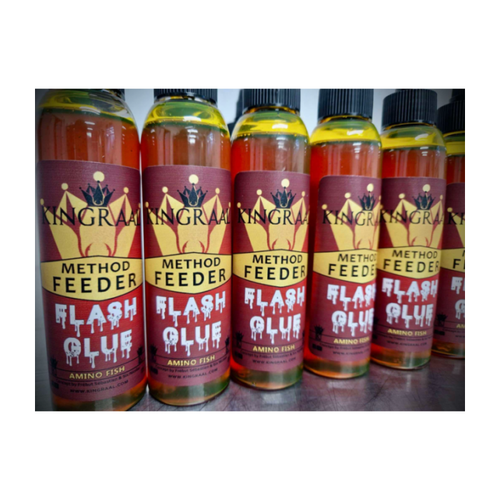 Nuestro FLASH GLUE AMINO FISH es más denso que el agua y puede utilizarse durante todo el año. Su alta densidad mantendrá plana su zona de cebado y dirigirá a los peces directamente a su cebo.