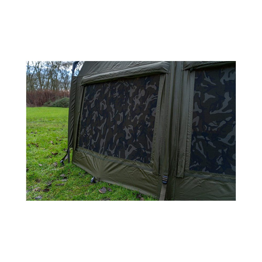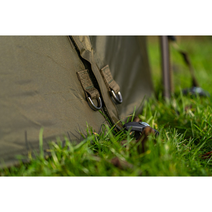 En los últimos cinco años se ha desarrollado una nueva gama de brollies para revolucionar la forma de pescar carpas. Frontier Biwy es el resultado de esta investigación y se ha diseñado sin dejar ningún detalle al azar. Se trata de un refugio ligero y ultracompacto que ofrece un amplio espacio y protección contra los elementos.El sistema de cubo central permite una fácil instalación, mientras que la estructura y la forma del marco de aluminio maximizan el volumen interior y la altura del refugio. Para darle un aspecto elegante, el tejido de 10.000 mm es una mezcla de malla de color verde caqui y camuflaje de zorro.