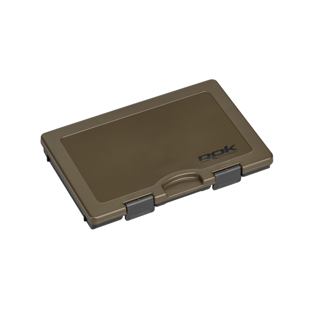 La caja extraplana ROK 362 es ideal para guardar sus cebos artificiales ROK, así como pequeños equipos como clips de plomo, cuentas, agujas, eslabones giratorios, etc. Están fabricadas con un polímero no tóxico, no agresivo y resistente a los rayos UV para proteger sus cebos. Encajan perfectamente en la caja ROK 433 para ahorrar el máximo espacio. Negro y marrón verdoso.