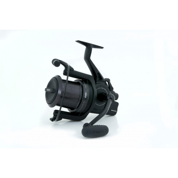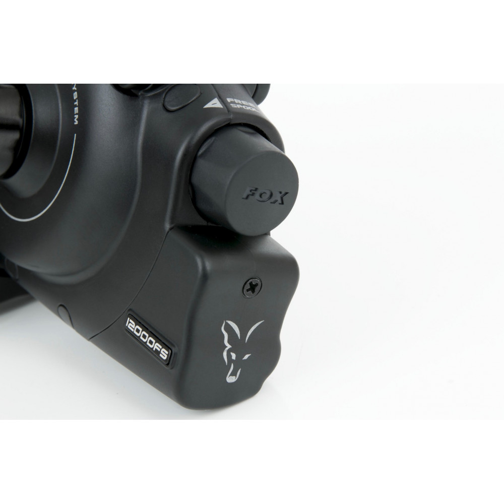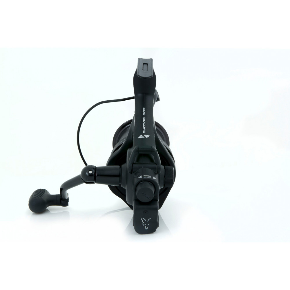 El carrete Eos 12000FS Acabado negro mate con logotipos sencillos.