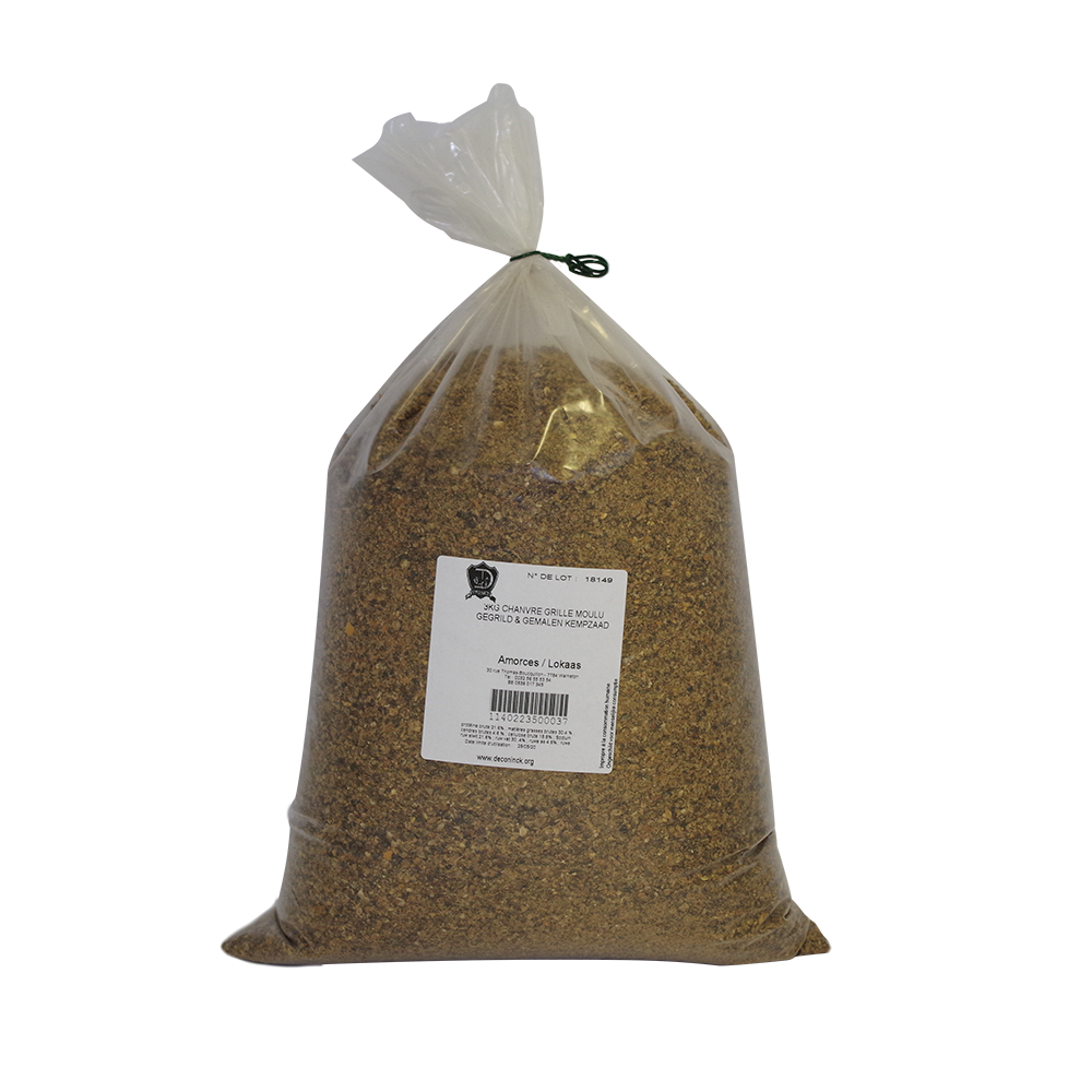 La semilla de cáñamo es un verdadero imán para las carpas. Hemos seleccionado una harina de cáñamo de alta calidad, de muy buen sabor y con una granulometría para marcar sus boilies.