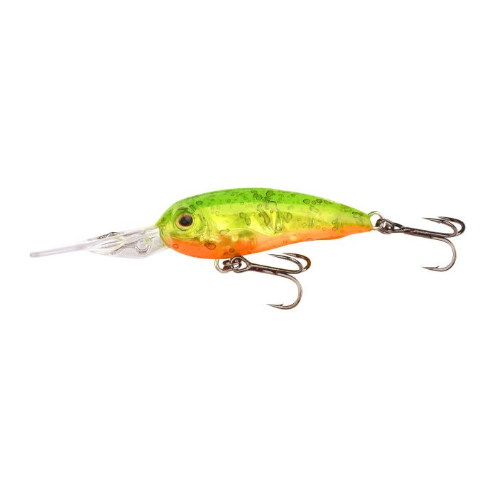 El Chibi Chibi está diseñado para su uso a corta y media distancia en zonas urbanas más profundas, como a lo largo de muros alrededor de estructuras y puentes. A pesar de su tamaño, el Chibi Chibi se sumerge muy rápidamente, lo que le permite trabajar la columna de agua a baja velocidad. Su acción increíblemente errática es una auténtica dinamita para los depredadores activos, especialmente las percas. La estructura poligonal interna se muestra a través de la pintura transparente para dar al Chibi Chibi un atractivo efecto reflectante realmente único. Está equipado con anzuelos Gamakatsu Treble 13 #10 de primera calidad.