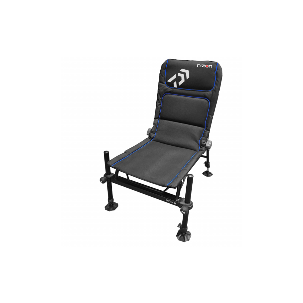 La silla de feeder Daiwa N'Zon es un modelo de gama alta diseñado para los pescadores de feeder más exigentes. Su diseño ergonómico y robusto permite permanecer cómodamente sentado durante largas horas de pesca, garantizando al mismo tiempo una perfecta estabilidad, incluso en terrenos irregulares.