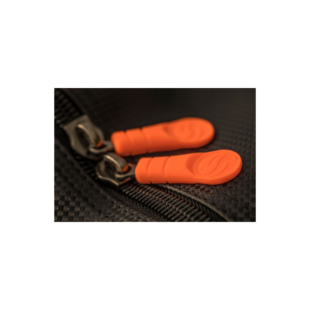 - Bolsillos internos acolchados para guardar paraguas de cebo, asas de redes de desembarco y otros accesorios adicionales