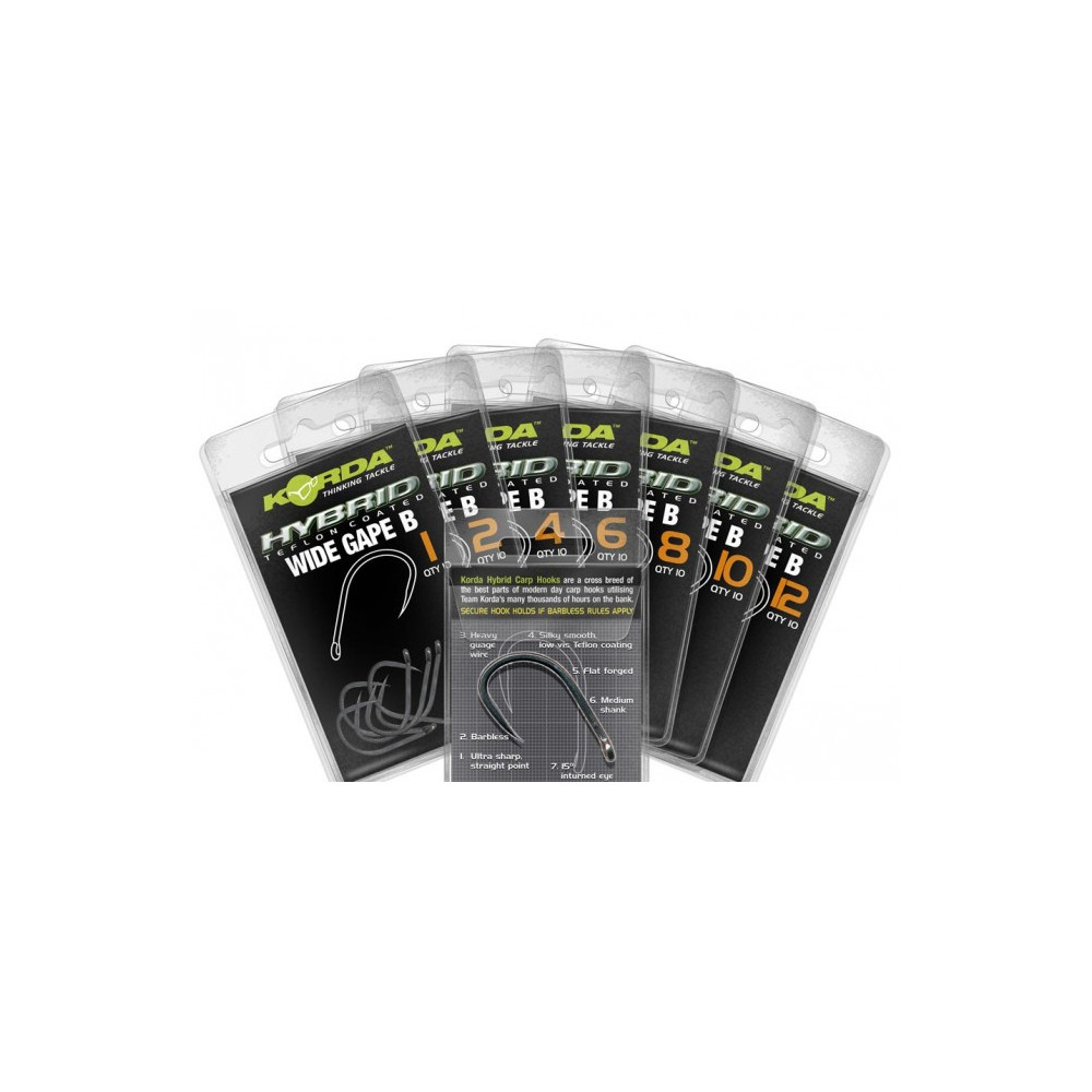 El anzuelo Hybrid Wide Gape B se basa en el mismo principio que el Wide Gape, con un calibre y peso ligeramente mayores para un anclaje más fuerte. No tiene púas para ayudar a la penetración y un perfil más grueso para ayudar a que se mantenga en su sitio.