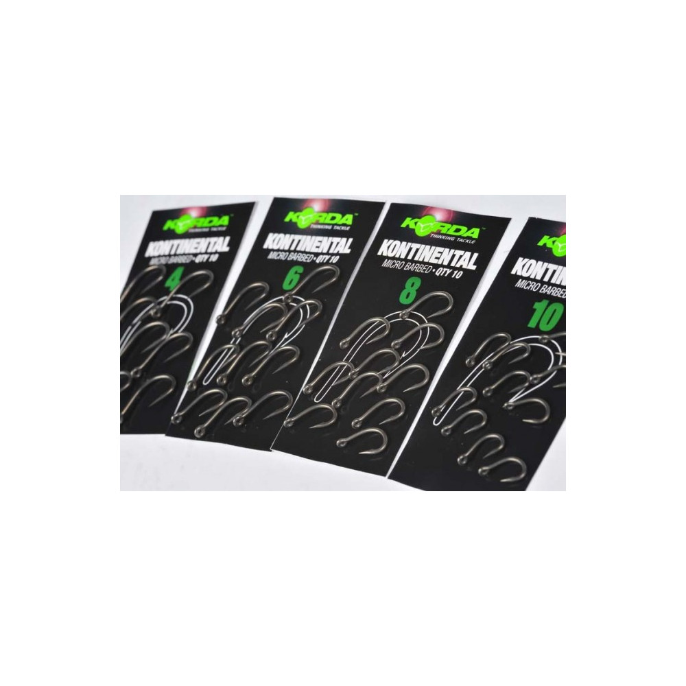 El anzuelo Kontinental ha sido desarrollado para situaciones de pesca exigentes en zonas concurridas y condiciones extremas. Tiene un gran diámetro de metal y una forma diseñada para permitir un anclaje sólido. Está disponible en tres tamaños, del n°4 al n°8, sólo con púa.
