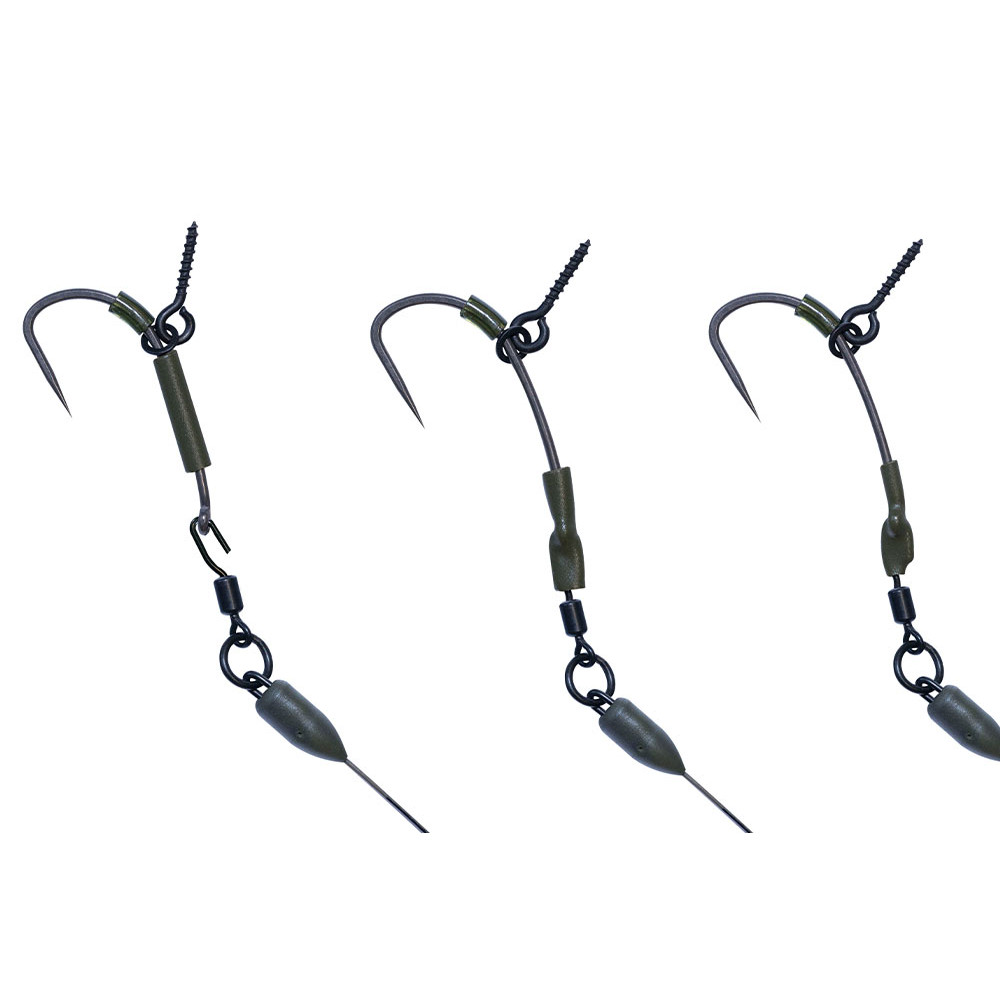 Diseñado para su uso en los aparejos Ronnie, el anzuelo grande permite una rápida y fácil sustitución del anzuelo. Utiliza el tubo retráctil ESP de 1,6 mm para enfundar el eslabón giratorio y colocar el anzuelo en el ángulo correcto. La anilla proporciona una bisagra flexible y puede fijarse directamente a la caña del anzuelo.