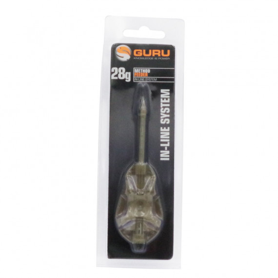 El alimentador de método GURU In-Line 28gr le ofrece todas las ventajas del revolucionario diseño de método sin la banda elástica. Con su carga frontal, el alimentador GURU permitirá a cualquiera ganar distancia al lanzar.