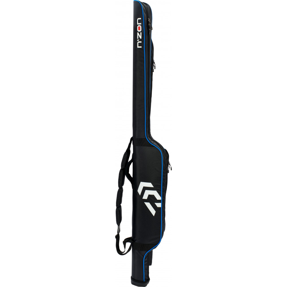 La NZ2 cuenta con un compartimento dividido en dos por un inserto de velcro, y bases ajustables para regular la altura de las cañas de modo que los 2 carretes puedan colocarse en el mismo compartimento, escalonados para evitar que choquen. Tres bolsillos adicionales en el exterior de la maleta proporcionan un almacenamiento seguro para los apoyos de las cañas, el tubo de las puntas, el asa de la red de aterrizaje y el brazo articulado del alimentador. Sus correas de transporte acolchadas y su asa le permiten transportar su equipo con total comodidad.