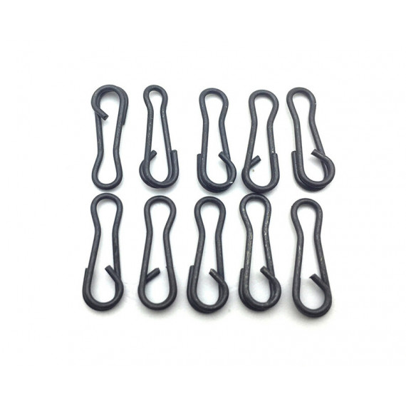 Estos clips de liberación rápida son utilizados por todos los pescadores de carpas. Son muy prácticos para cambiar rápidamente plomadas, flotadores, leadcore, eslabones giratorios de helicóptero, etc. Son negros y no reflectantes.