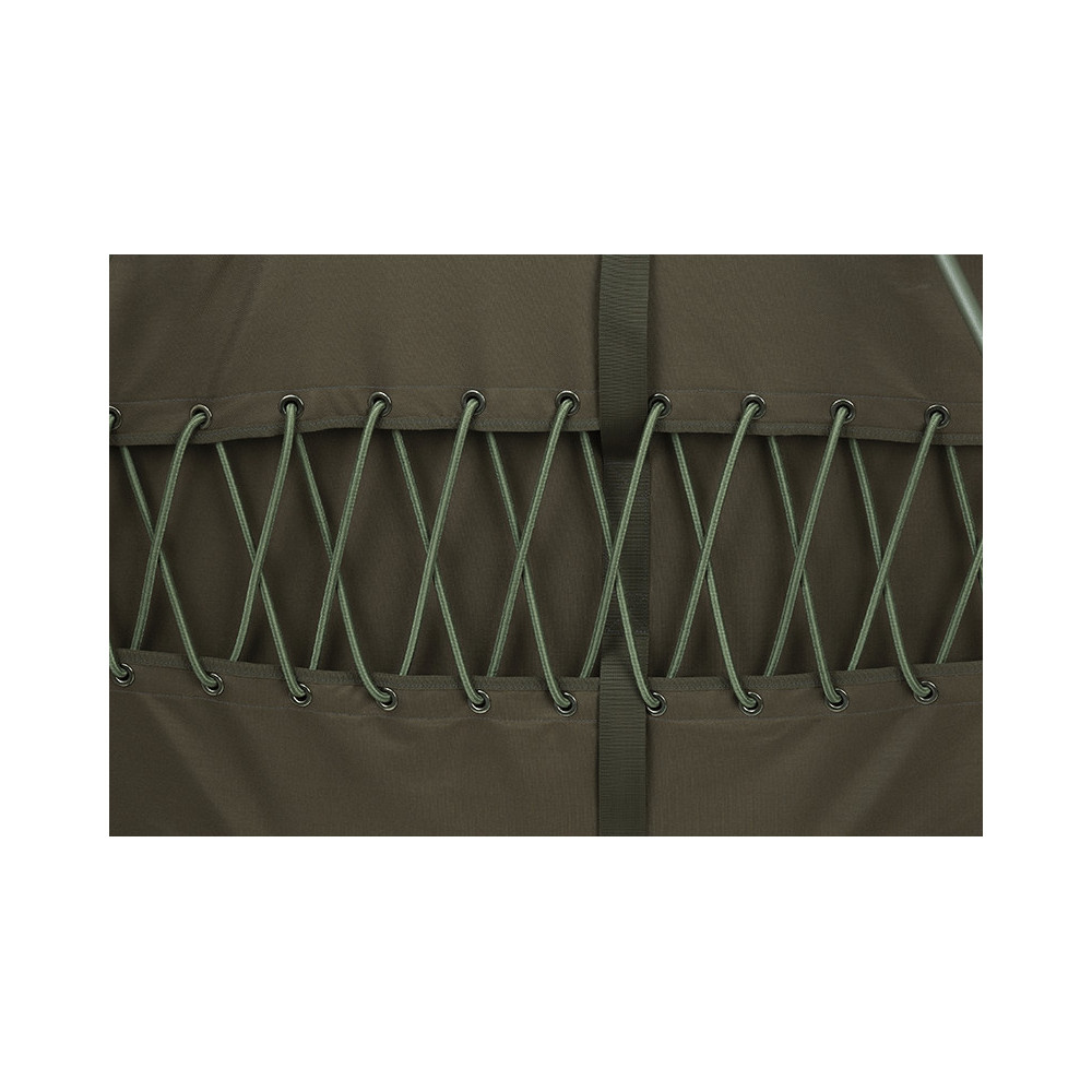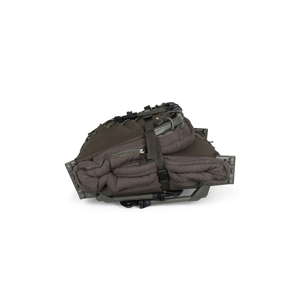- El diseño de las correas tensoras laterales (dos correas a cada lado que rodean el marco y no el colchón) permite plegar la cama de forma mucho más compacta de lo habitual.