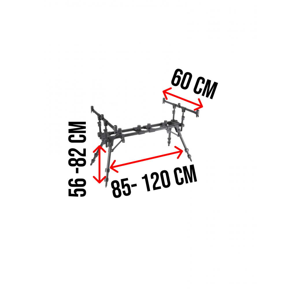 Robusto Rod Pod, con muchas posibilidades de ajuste, patas telescópicas, parte central ajustable (de 85 a 120cm). Viene con bolsa de transporte.