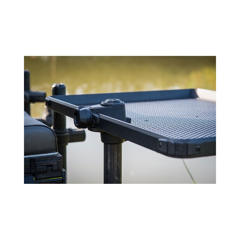 La tablette latérale Matrix Self Support Side Tray XL est conçue pour offrir un espace de rangement stable et pratique sans besoin de support secondaire. Grâce à son moyeu de serrage surdimensionné, elle se fixe solidement à un seul pied de station, tout en restant parfaitement rigide et stable.