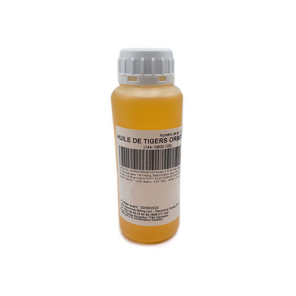 - Polyvalent : L’huile de tiger nuts peut être utilisée pour tremper des bouillettes, enrober des pellets ou être directement ajoutée à vos mixes pour une attractivité accrue dosage 50ml/kg.