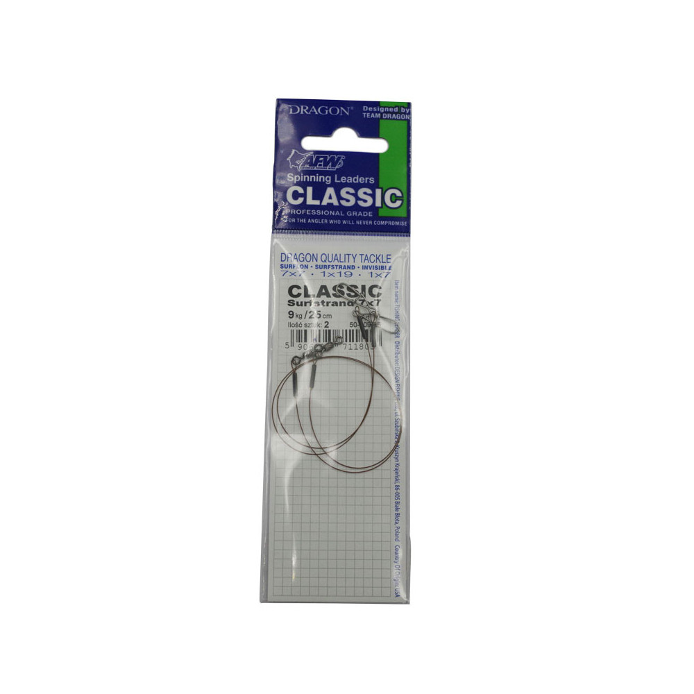 Bas de ligne acier de 25cm, 7 brins avec émerillon et agrafes pour la pêche des carnassiers.