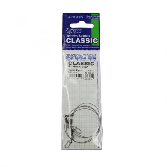 Bas de ligne acier de 30cm, 7 brins avec émerillon et agrafes pour la pêche des carnassiers.