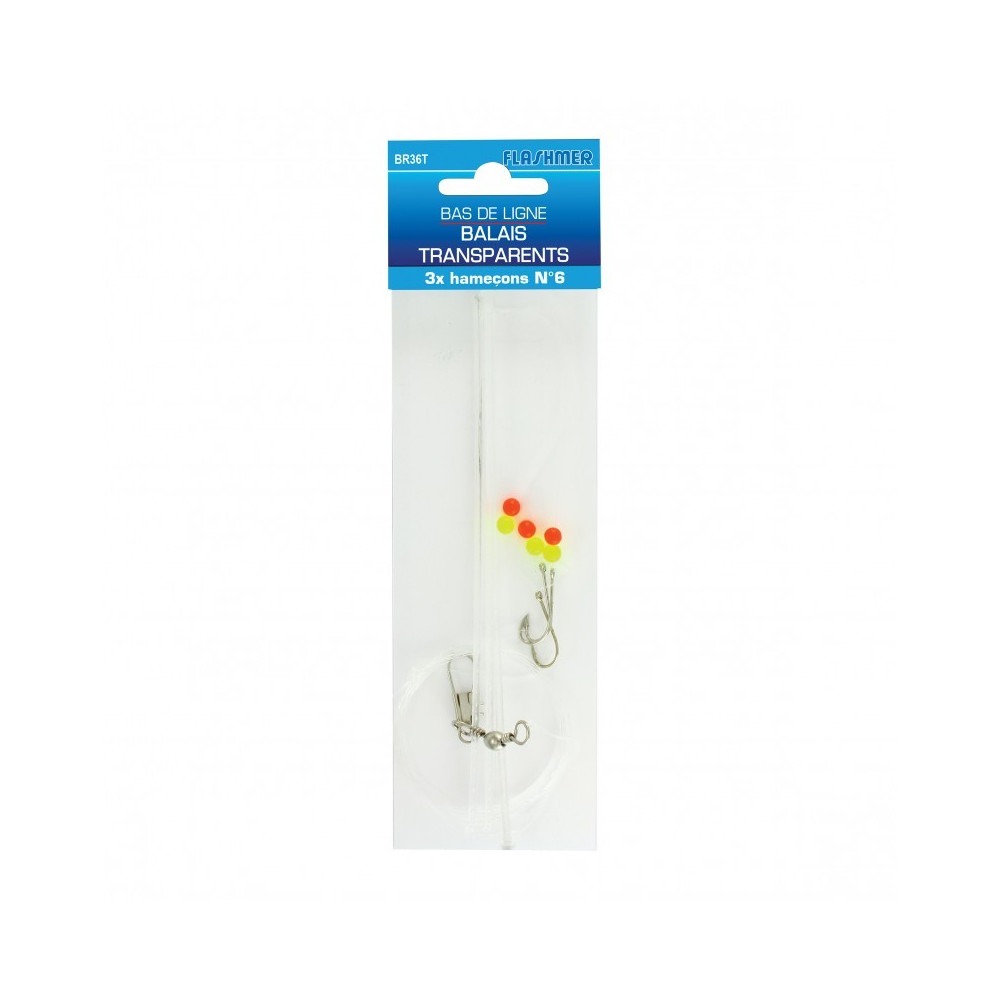 Bas de ligne Surf Balais Transparent 3 hameçons n°6 Flashmer
