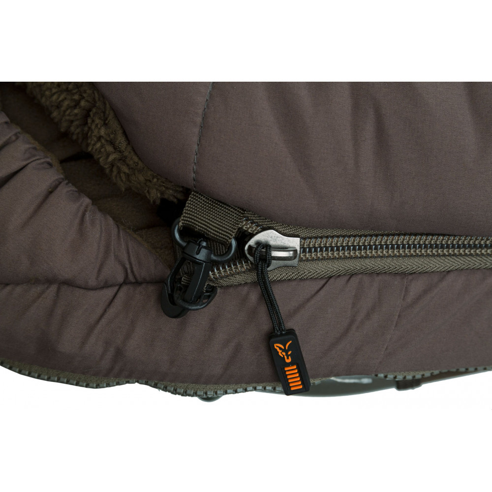 - Conception avec compartiments pour pieds chauds, la fermeture à glissière s’arrêtant bien avant les pieds pour ne pas que l’air chaud s’échappe