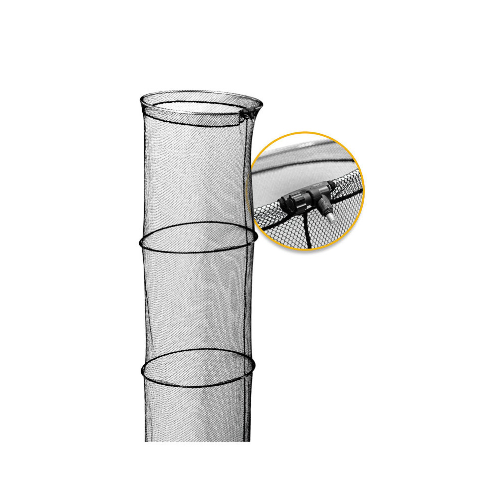 Bourriche Keep Net Extra Carp longue de 2m avec des mailles de qualité en diamètre 5mm. La bourriche a un diamètre de 45cm et elle se visse facilement sur tout Support universel.