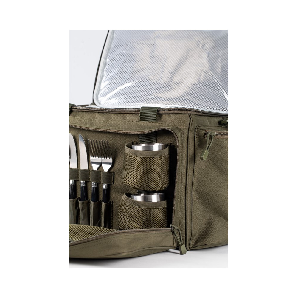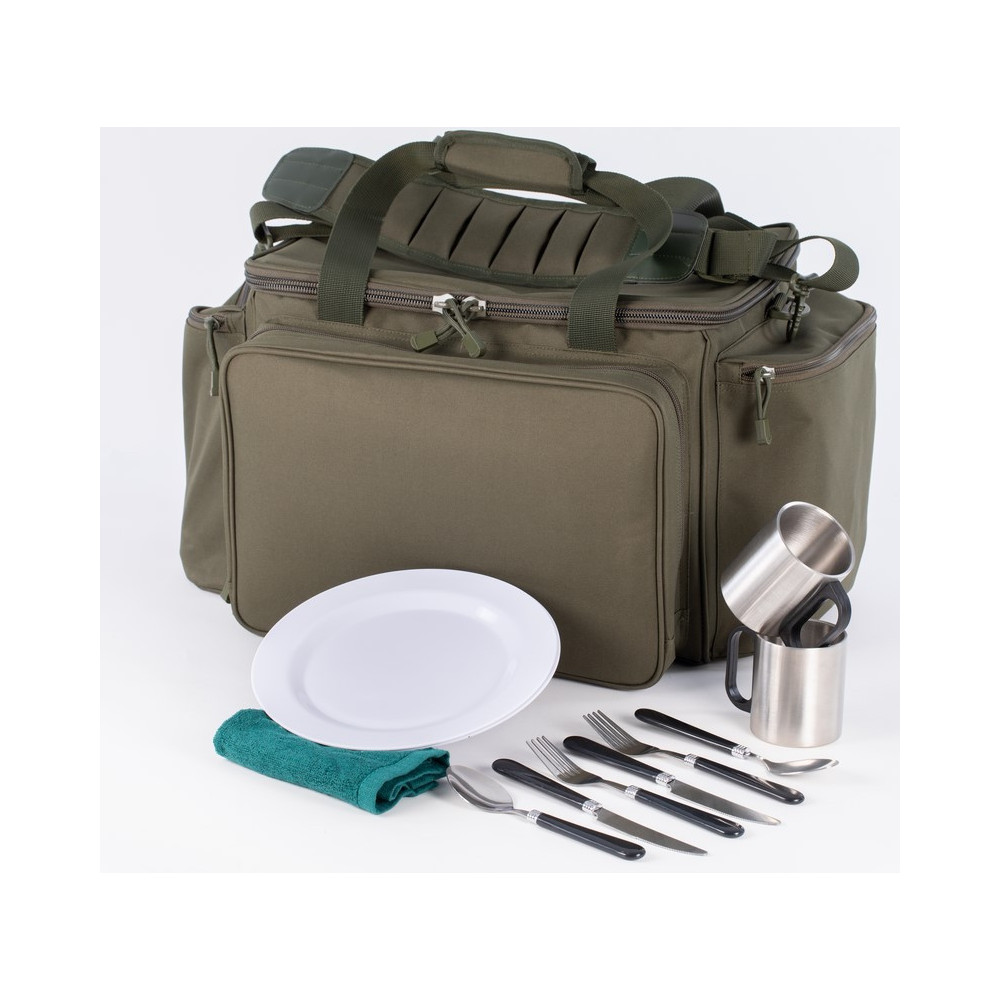 Le sac glassière Starbaits Pro TECH Food Bag est le Bagage idéal pour emmener vos aliments et vos nécessaires de cuisine. Son compartiment isotherme est facile à nettoyer. Il dispose de poches frontales où sont soigneusement rangés 2 assiettes, 2 fourchettes, 2 cuillères, 1 serviette et 2 mugs. A noter la présence également de 2 poches latérales. Le STB Pro TECH Food Bag dispose de 2 sangles poignées ainsi qu'une bandoulière pour son transport.