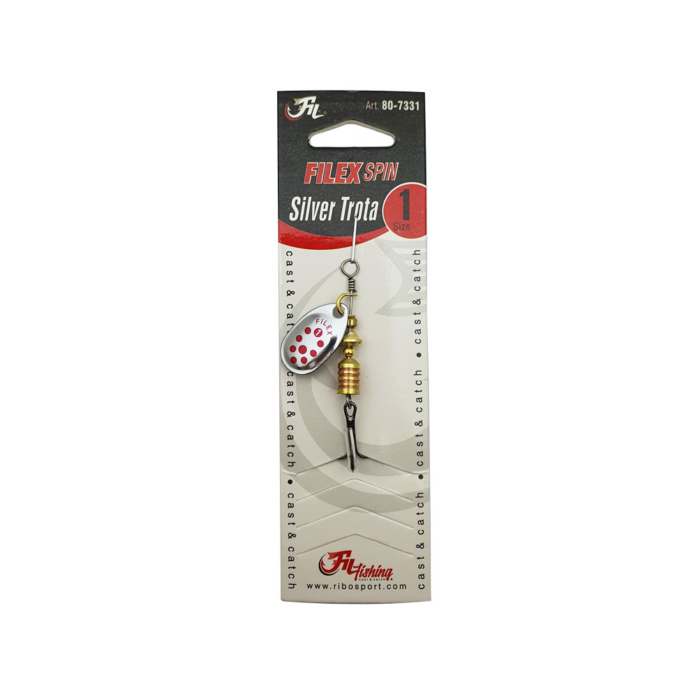 Cuiller tournante pour la pêche du carnassier disponible en différentes tailles. Munie d'un hameçon triple solide. Couleur "Silver Trota".