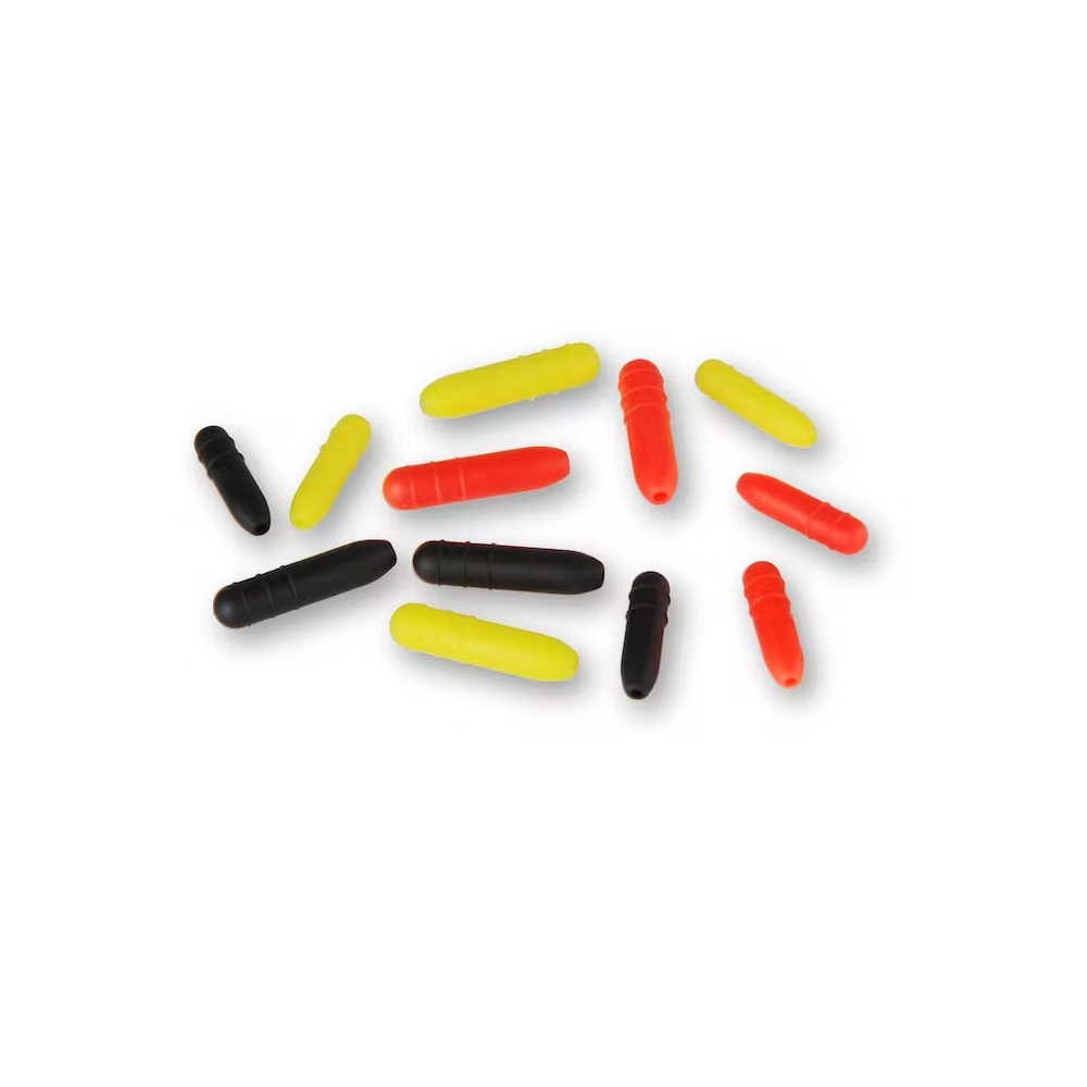 Capuchons en caoutchouc élastique très légers de couleur fluorescente àinsérés sur l'antenne du flotteur, ils améliorent grandement sa visibilité. Ils ne modifient pas la capacité de charge du flotteur. Sachet assorti de 3 couleurs et deux tailles qui s'adaptent aux antennes de Ø 1,0 à 2,5 mm.