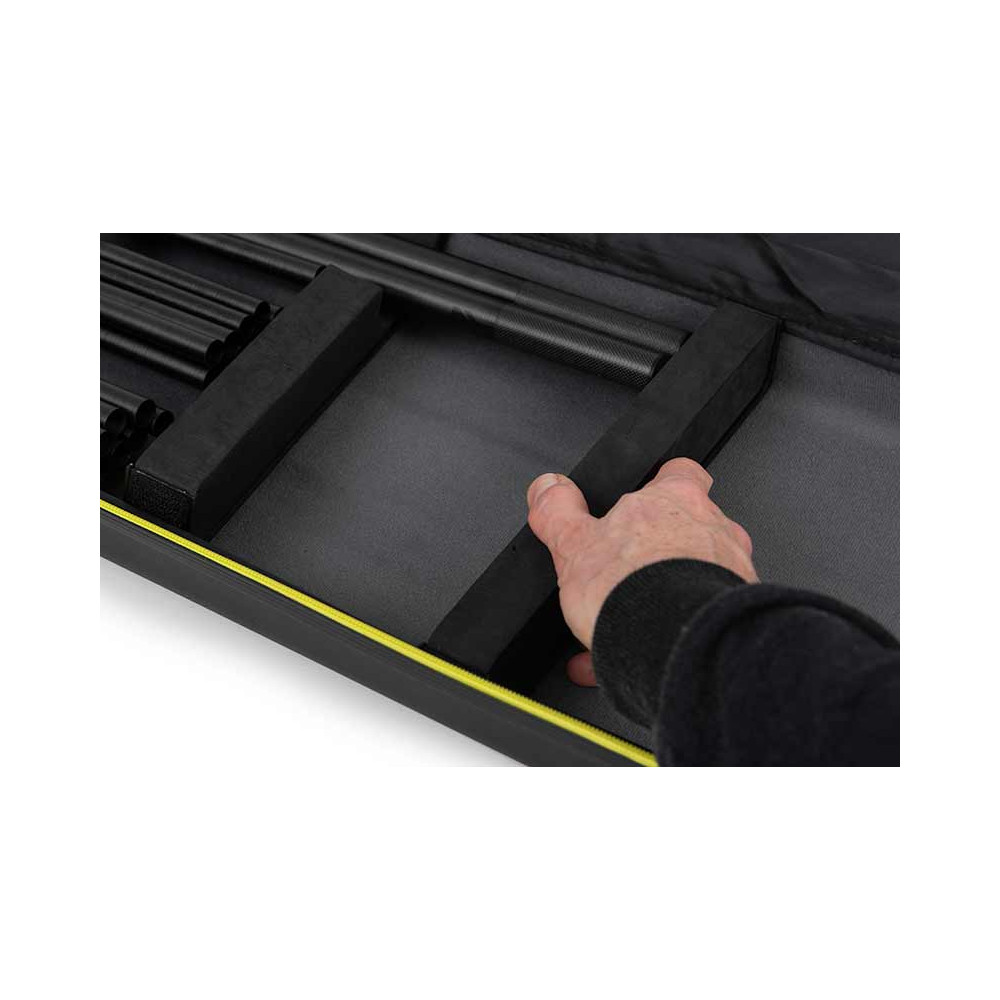 Construit à partir d’un matériau durable pour offrir une protection maximale à votre Capable de stocker 30 kits plus 4 sections de (17,5 m de canne) Inserts en mousse amovibles pour les kits supérieurs et les sections de Les inserts en mousse aident à protéger vos sections et empêchent les kits de se déplacer. Le séparateur rembourré empêche tout carbone de s’entrechoquer pendant le transport.195 cm de longueur pour accueillir des kits monobrins et des sections de canne plus Doublure intérieure rembourrée pour une protection Sangles de fixation intérieures. Poignées en néoprène Bandoulière Accès facile grâce à la fermeture éclair sur toute la Dimensions – L195 x H13 x Poids – 4,8 kg
