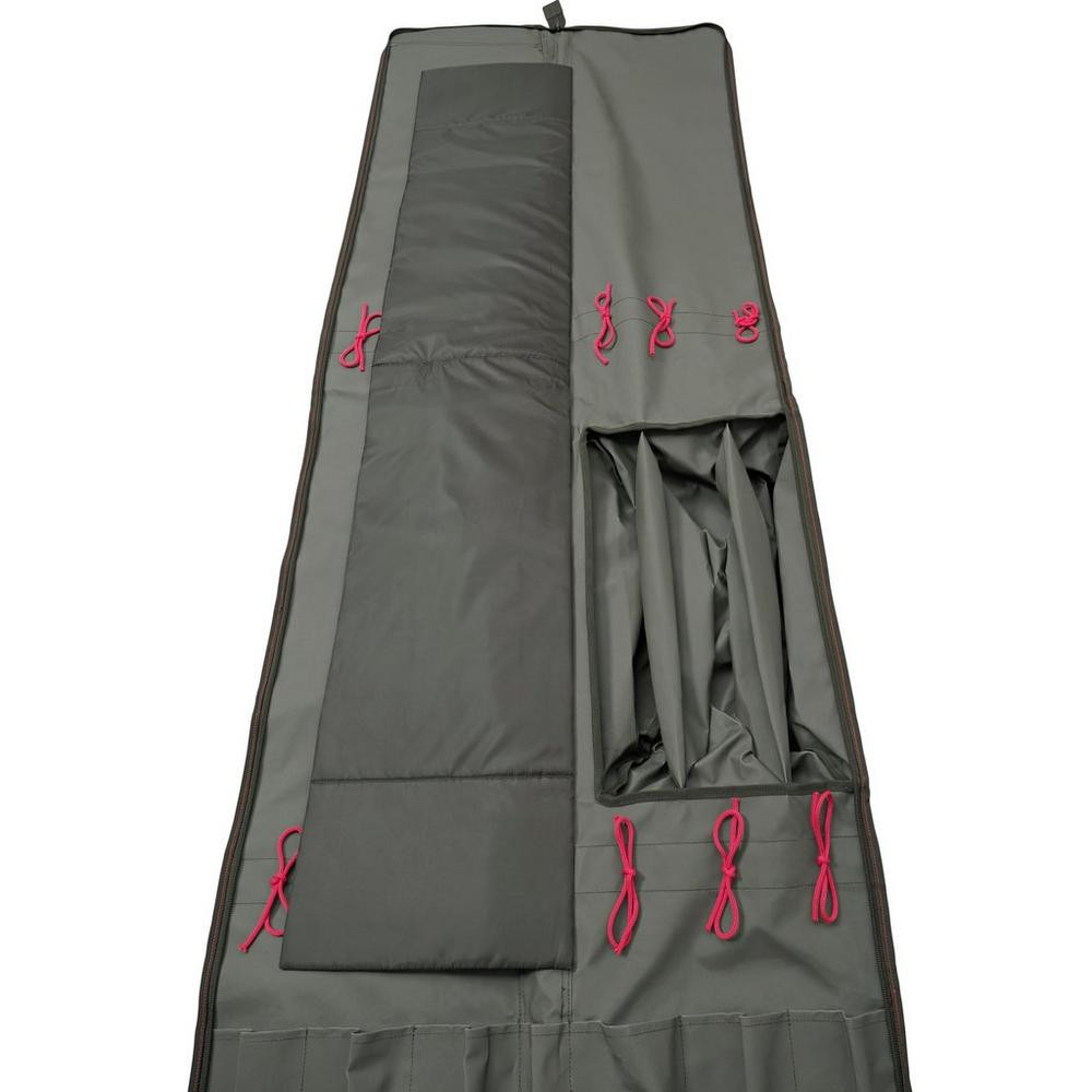 Grâce à ses grandes poches externes pour parapluie, biwy, banksticks et buzz bars, ainsi qu’à ses renforts intérieurs et séparateurs rembourrés, ce fourreau assure confort, sécurité et praticité lors de toutes vos sessions de pêche à la carpe.