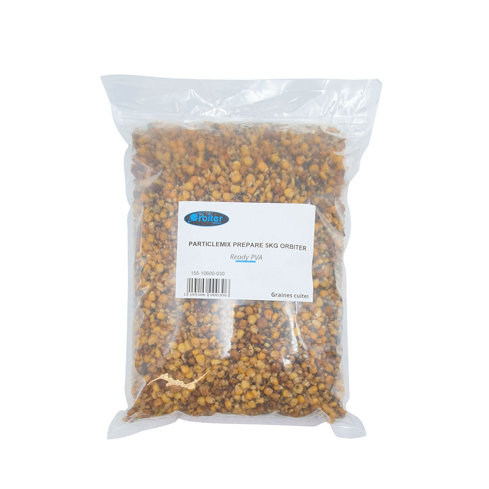 Le Particle Mix Orbiter déjà préparé en sac de 5 kg (environ 5kg23) est un mélange d’appâts naturel, prêt à l’emploi, conçu pour attirer une grande variété de poissons, notamment la carpe et les poissons blancs. Ce mix de particules est composé de graines sélectionnées et pré-cuites(mais, blé, chénevis et tiger nuts), assurant une diffusion optimale des arômes et des nutriments dans l'eau sans besoin de préparation supplémentaire. Avec son format généreux de 5 kg, ce sac est idéal pour des amorçages lourds ou pour des sessions de pêche prolongées.