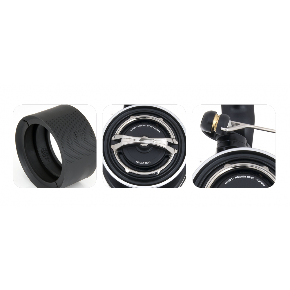 Le pêcheur peut ainsi choisir entre différents diamètres de fil et Plusieurs capacités afin de s’adapter parfaitement au contexte de pêche. Le système Instant Drag multi-disques permet d’ajuster le frein d’une position libre en position de combat avec seulement ½ tour, grâce à la molette située sur l’avant de la bobine pour être en combat immédiatement.