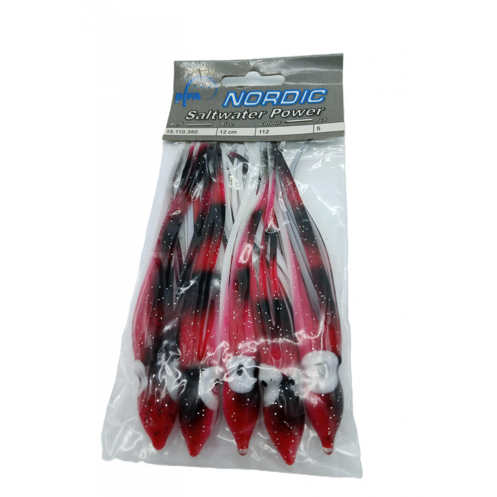 Octopus non montés pouvant êtres utilisés pour divers utilisations. En mitraillette pour le cabillaud, en teaser pour le silure ou en trailer derriére un jig.