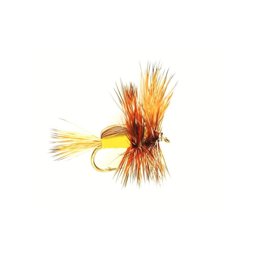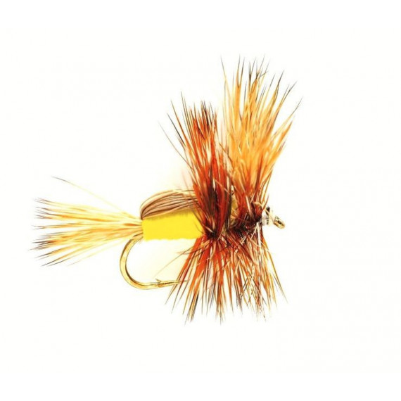 voici la mouche Jaune Humpy. Cette haute visibilité à sec est une variante de la norme Humpy, elle est fortement habillée et conçue pour la flottabilité et la visibilité dans l'eau rapide et ruisselante.